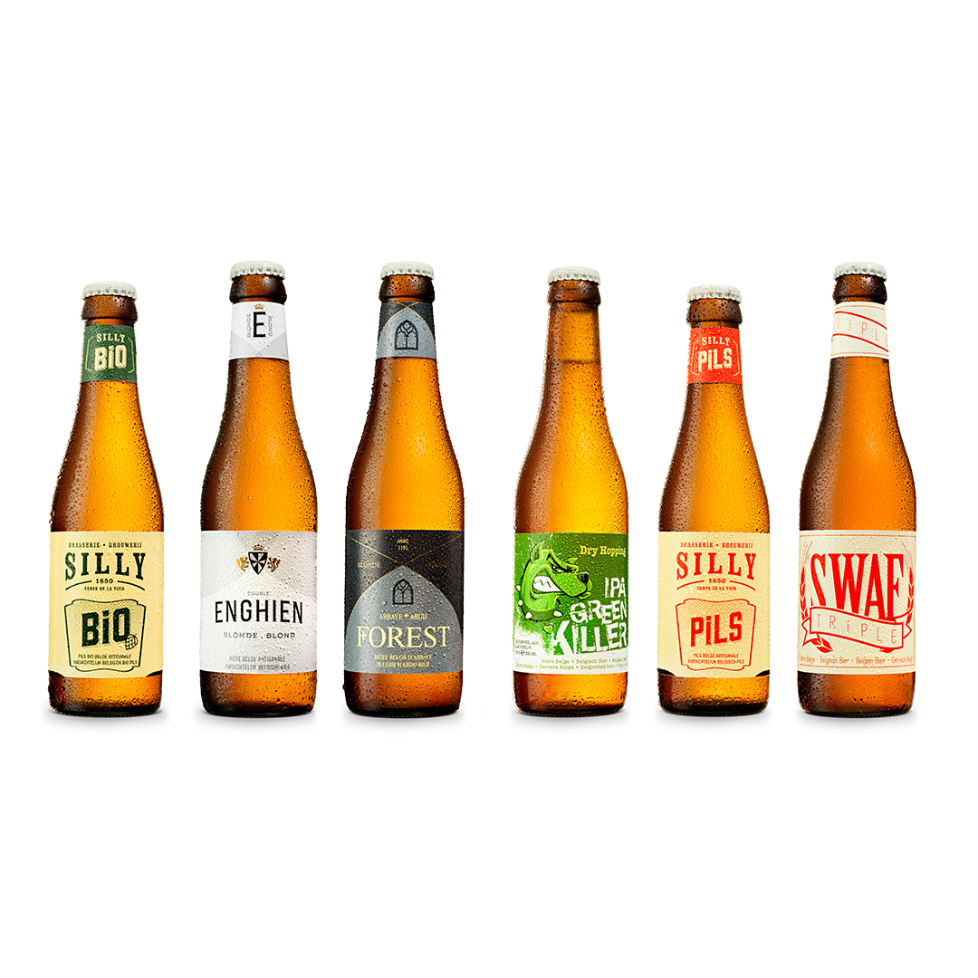 2 x Forest, 2 x Enghien blonde, 2 x Silly Bio, 2 x Silly Pils, 2 x Triple Swaf, 2 x Green Killer